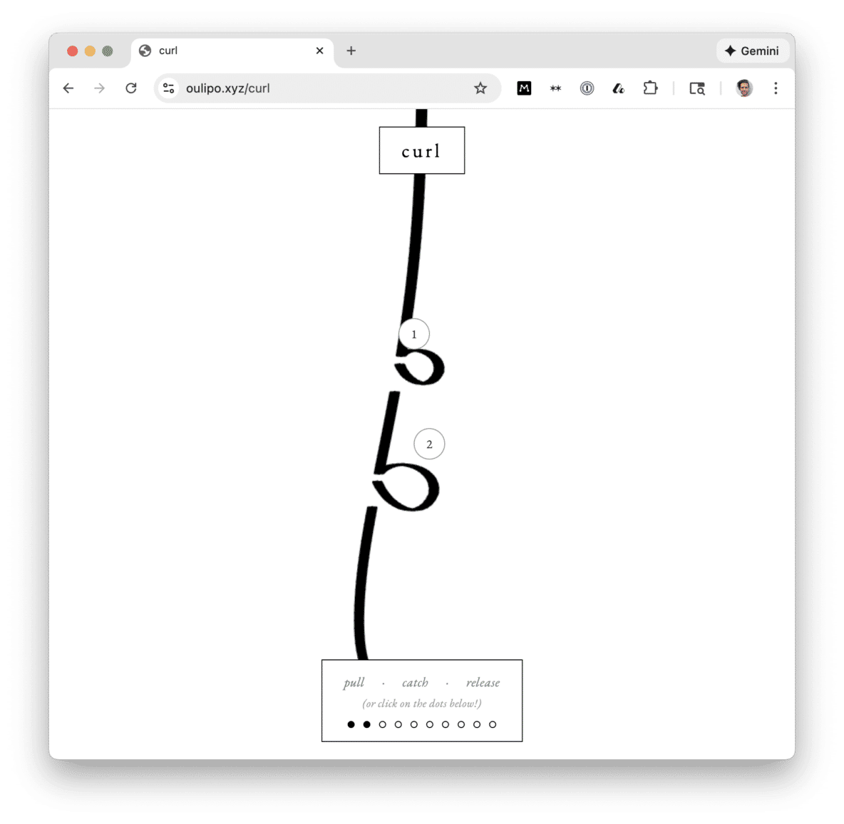 CURL is a capillary cartography where poetry becomes somatic, where the interface itself curls. The strand is navigation. The bounce is resistance. The reader doesn’t scroll. They tug at a life, and it gives. An alphabet written in the language of what grows back.